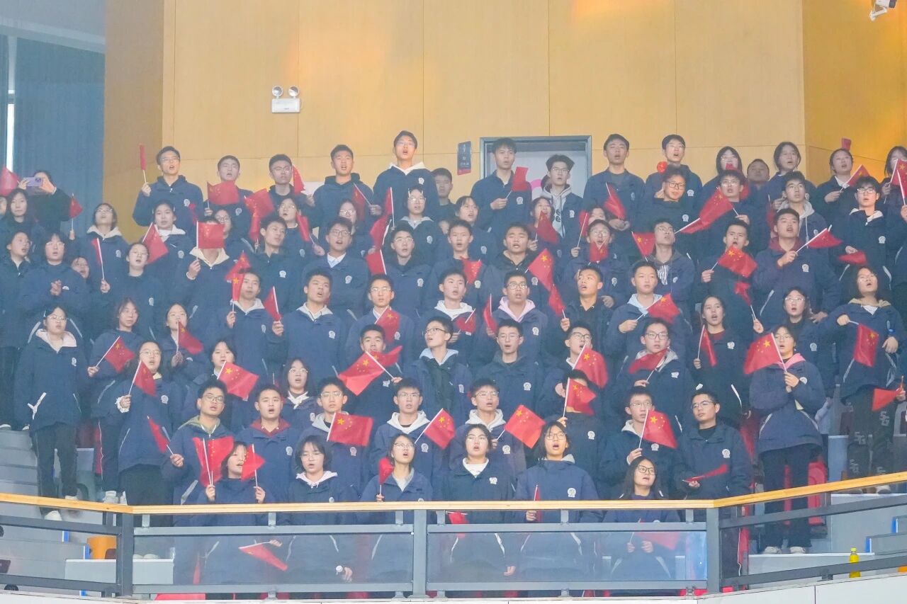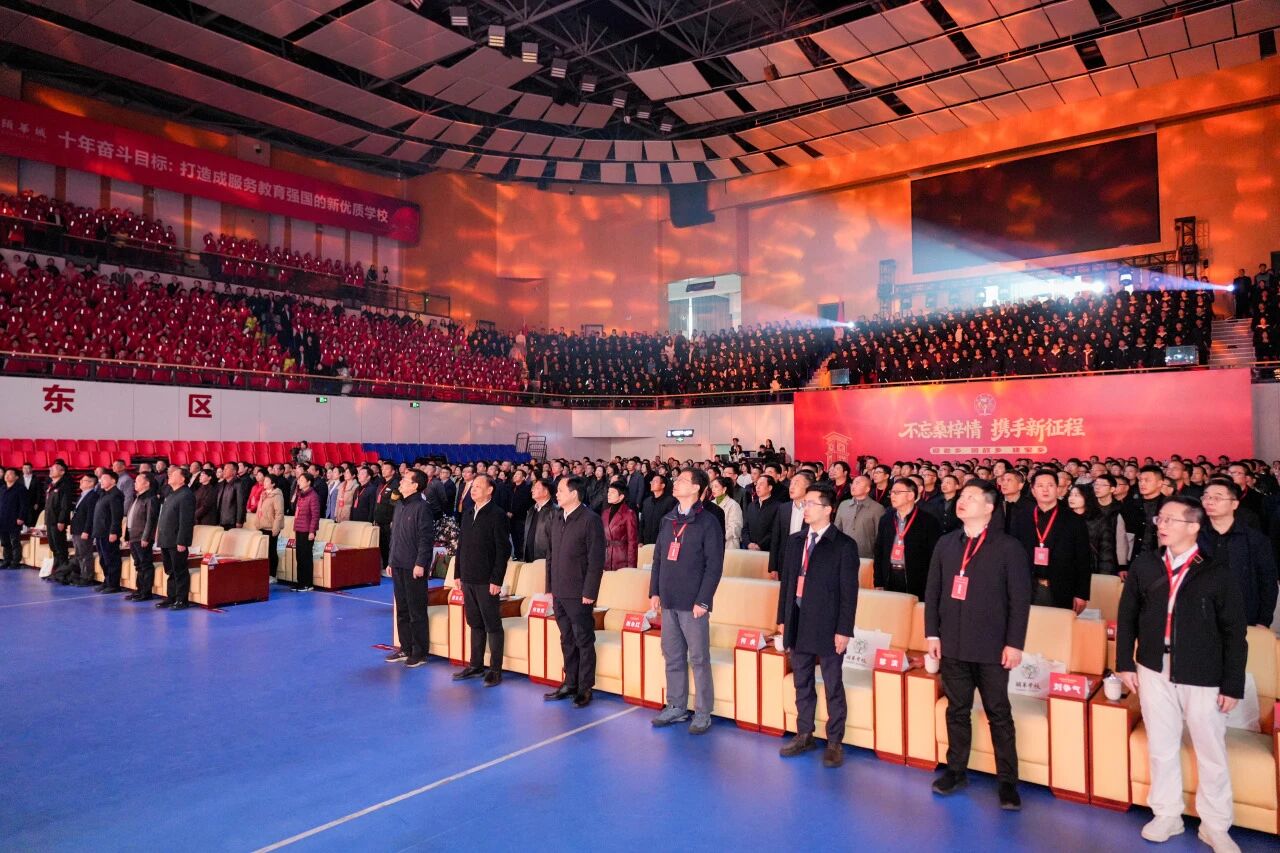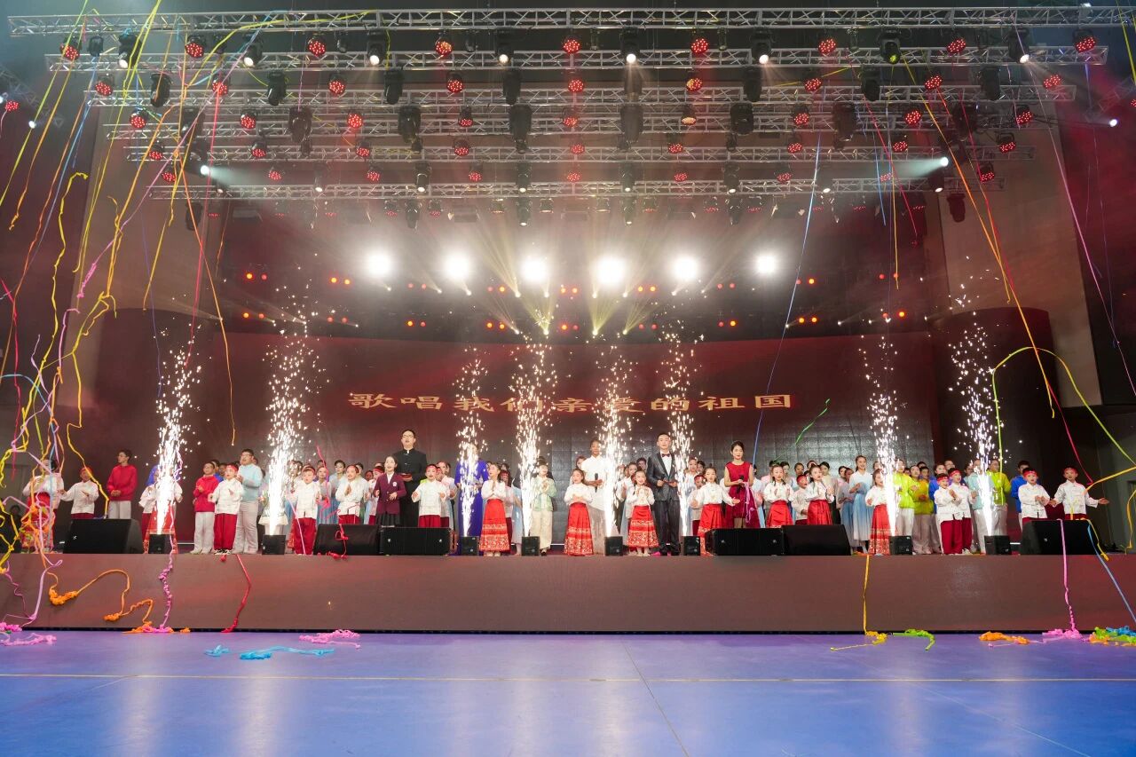 全场大合唱《歌唱祖国》,激昂歌声融汇对母校、乡土与祖国的炽热情感,旋律回荡间,家国情怀久久激荡。