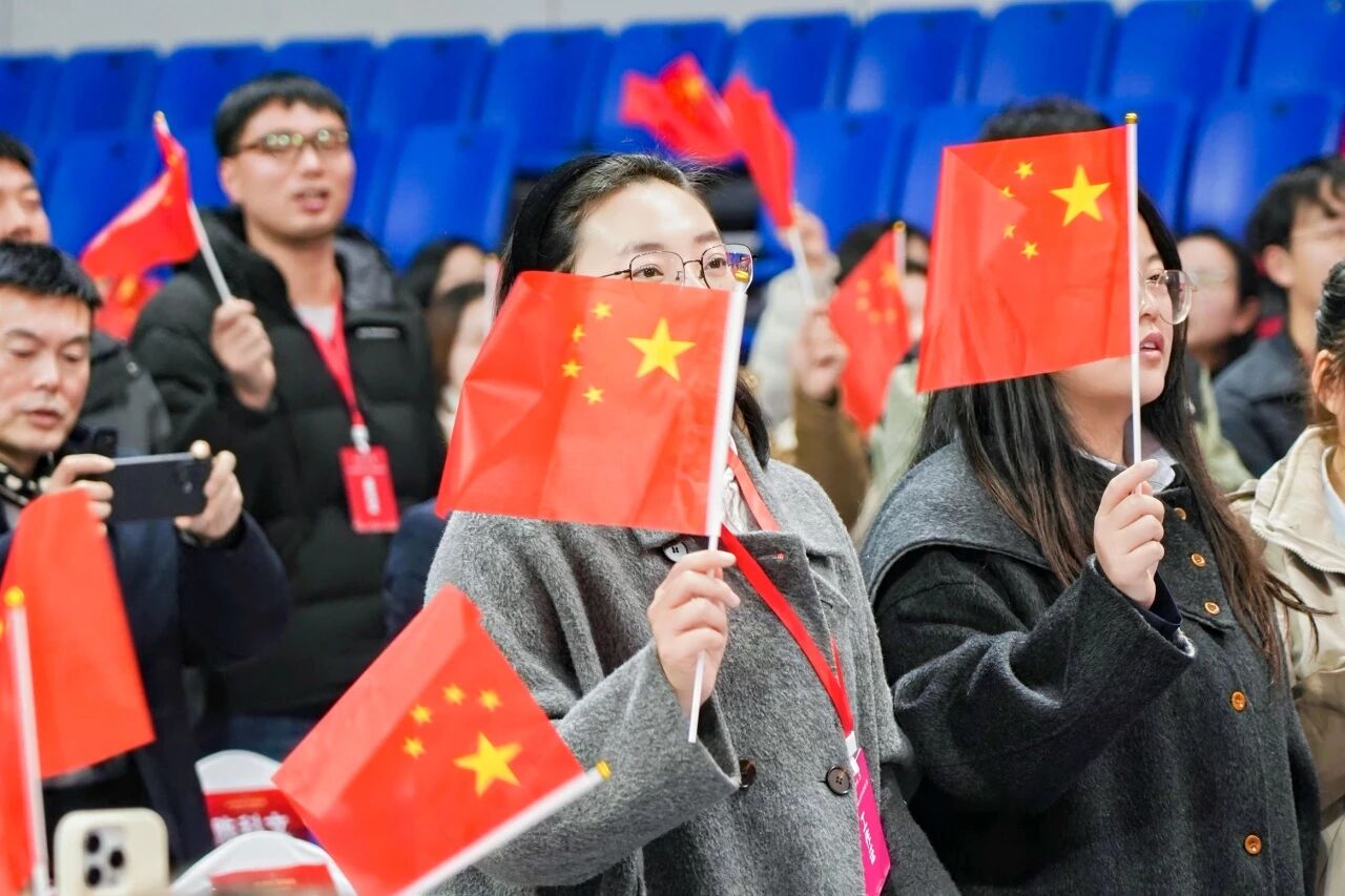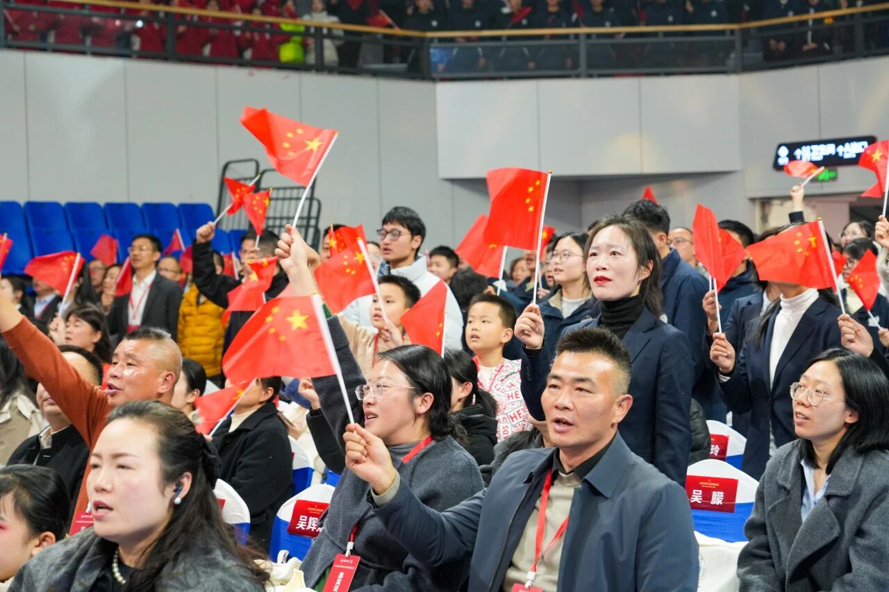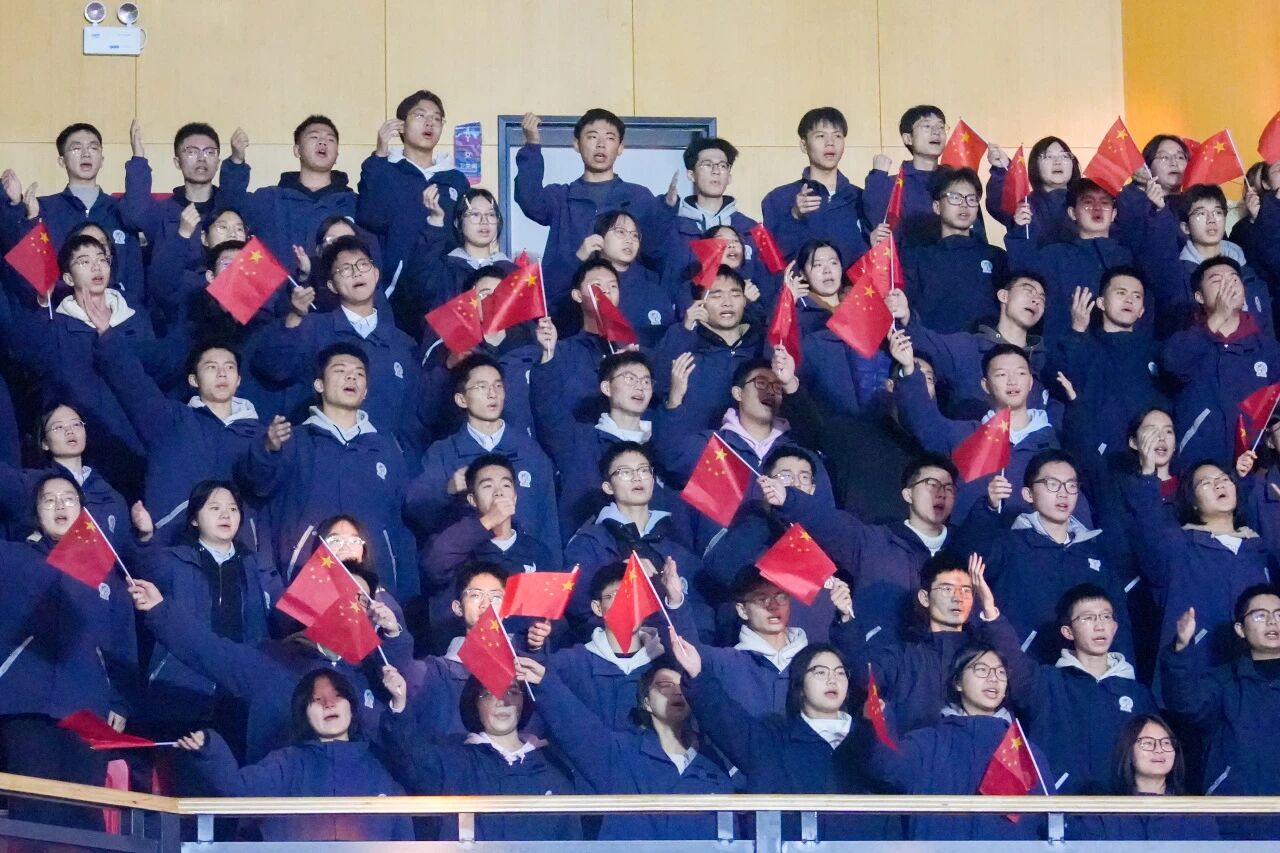 全场大合唱《歌唱祖国》,激昂歌声融汇对母校、乡土与祖国的炽热情感,旋律回荡间,家国情怀久久激荡。