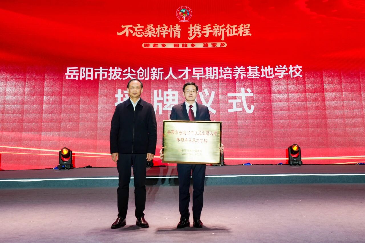 岳阳市教育体育局党组成员、总督学何坡根授予学校“岳阳市拔尖创新人才早期培养基地学校”牌匾,颐华学校成为岳阳市仅有的两所获此殊荣的学校之一。他指出,颐华学校自创办之初,就积极布局拔尖创新人才早期培养工作,逐步构建起较为完善的课程体系、科学的管理模式、专业的教练团队和系统的贯通培养机制,其经验值得总结和推广。