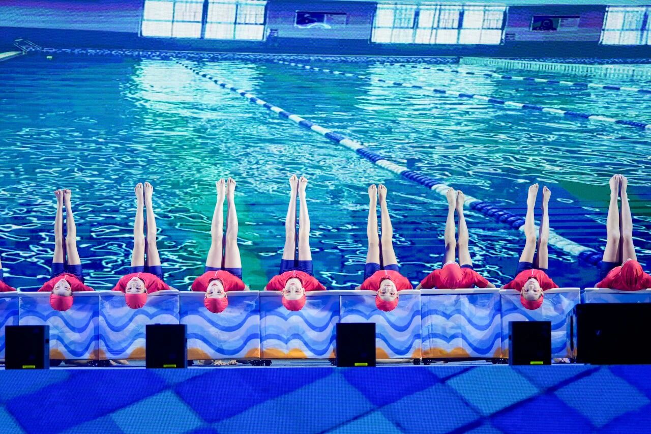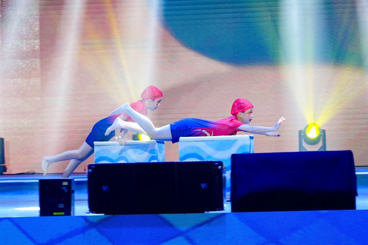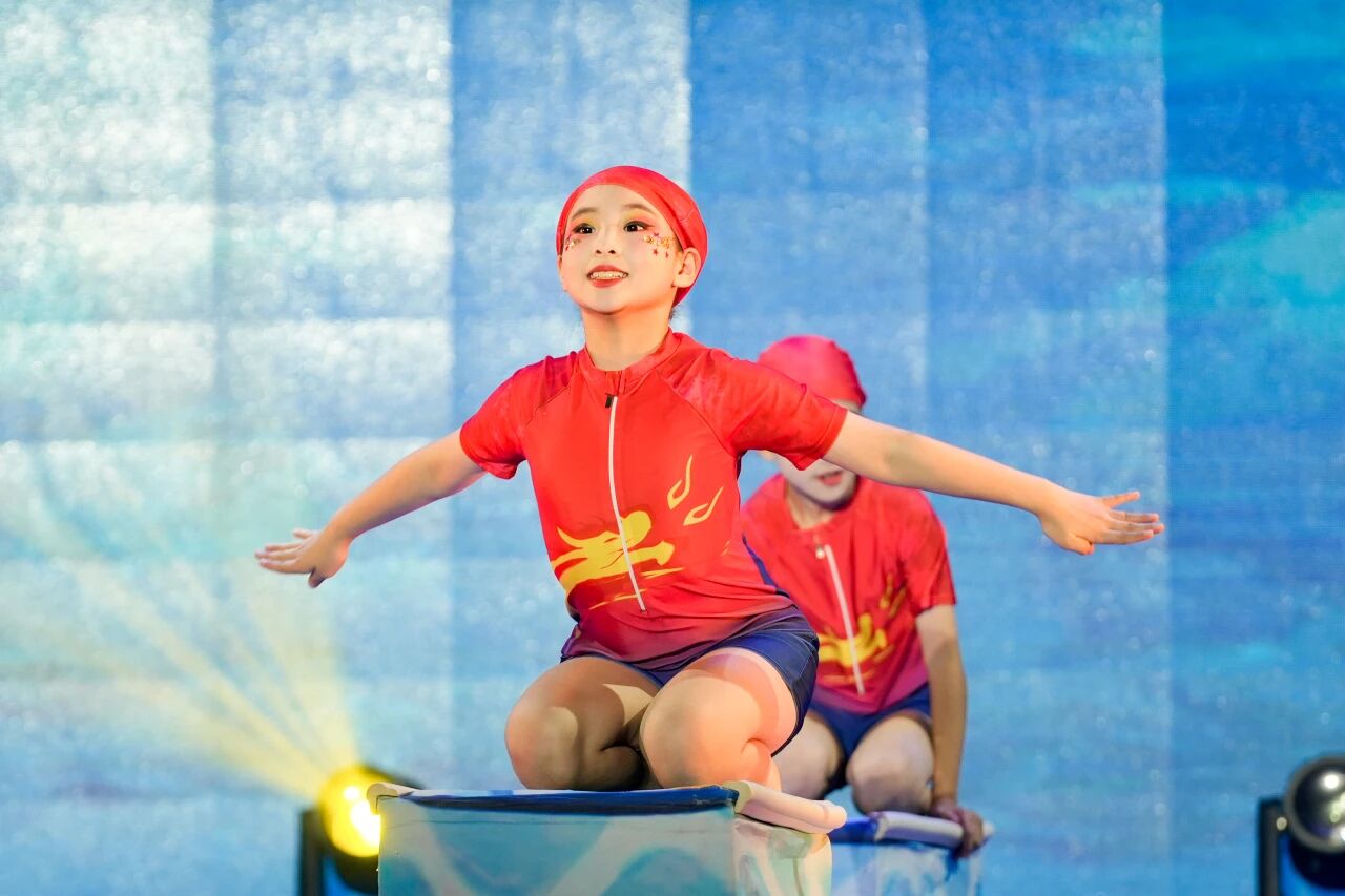 水花跃动成青春乐章,身影穿梭如游龙逐浪。舞蹈《泳池欢歌》中,健儿们用矫健的舞姿,挥洒出拼搏向上、击水弄潮的青春激情。