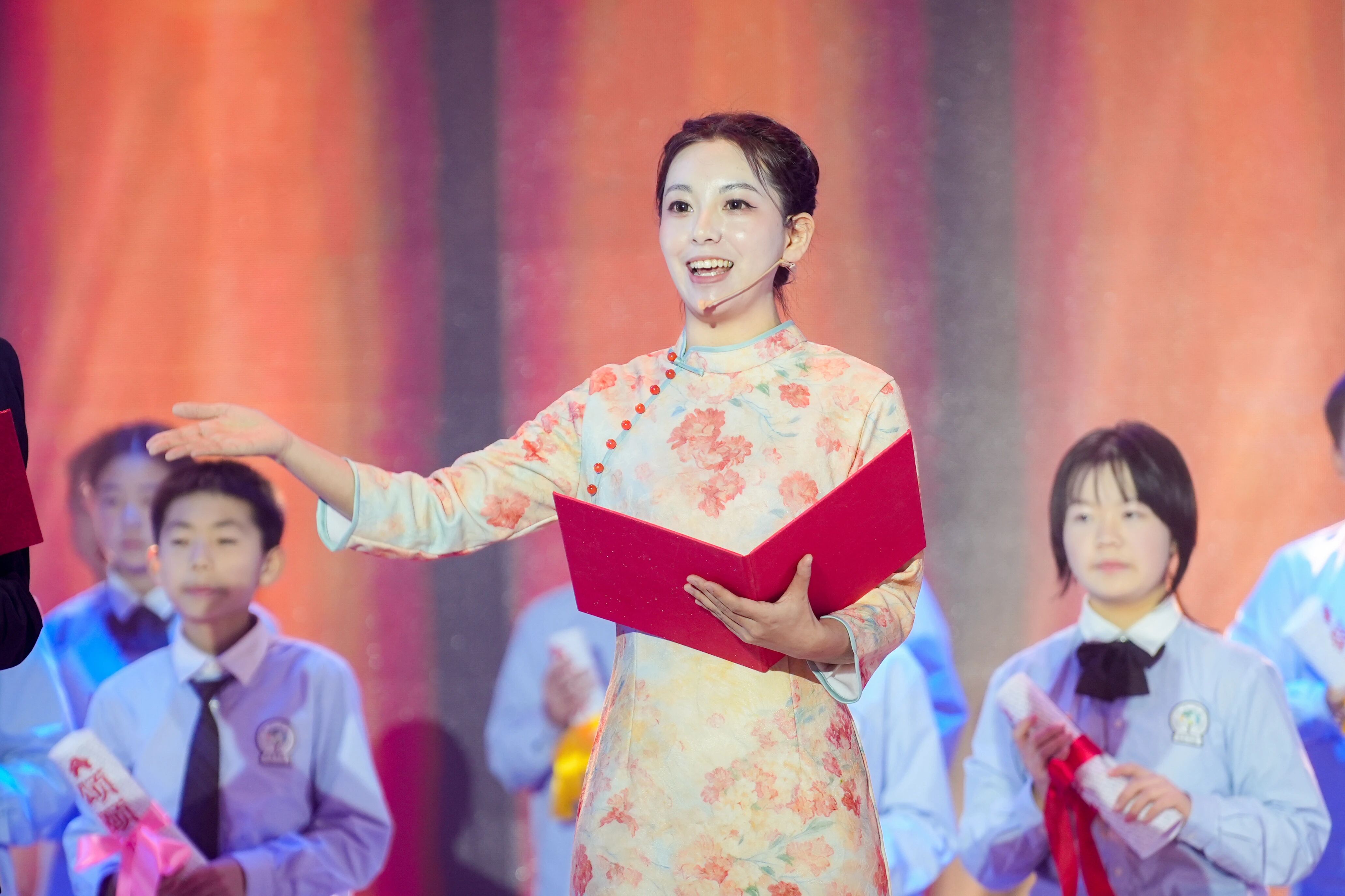 情景剧《传·承》,时空对话串联千年文脉,舞台演绎延续师者初心;典籍智慧与谆谆教诲交融,先辈使命与少年理想相拥,完成一场跨越时空的温暖接力。