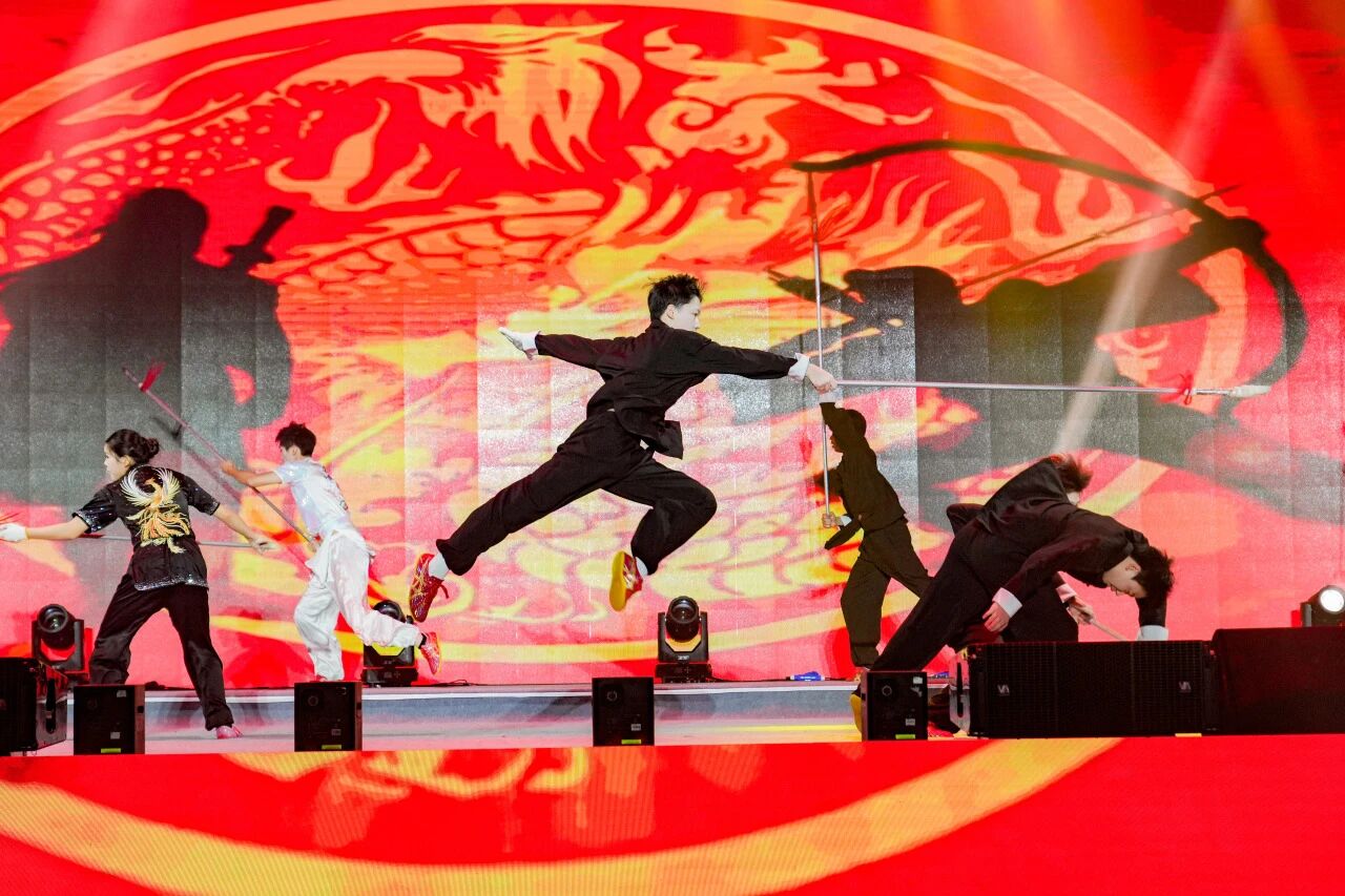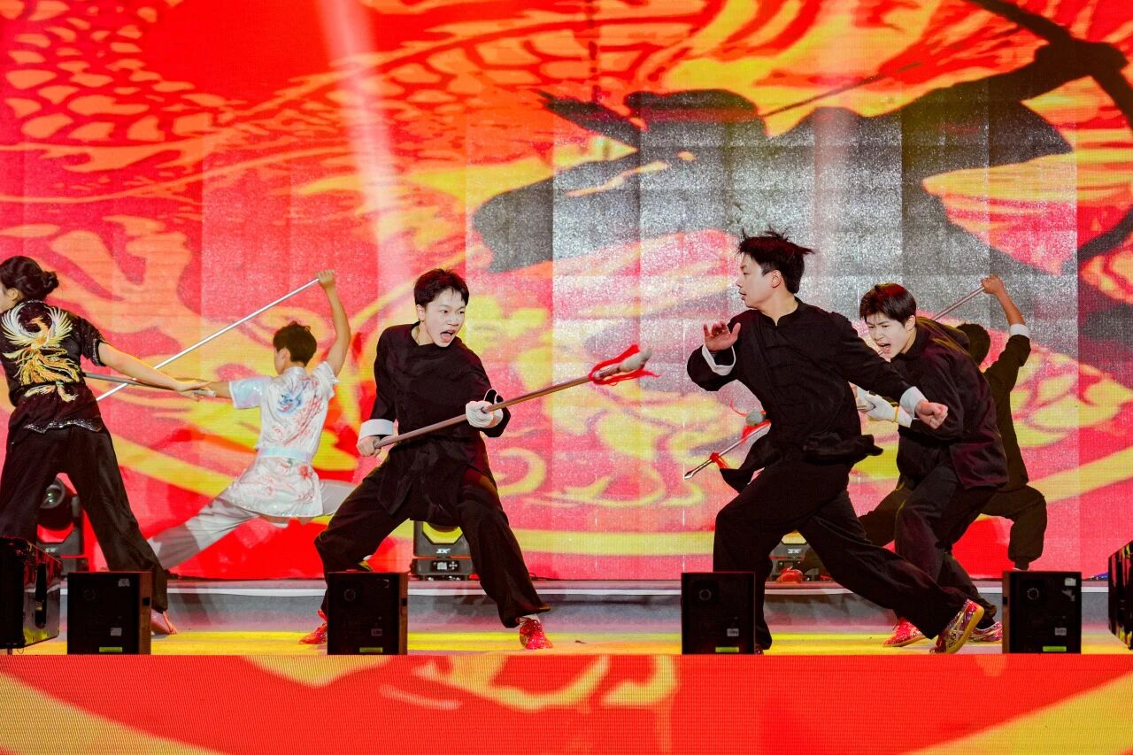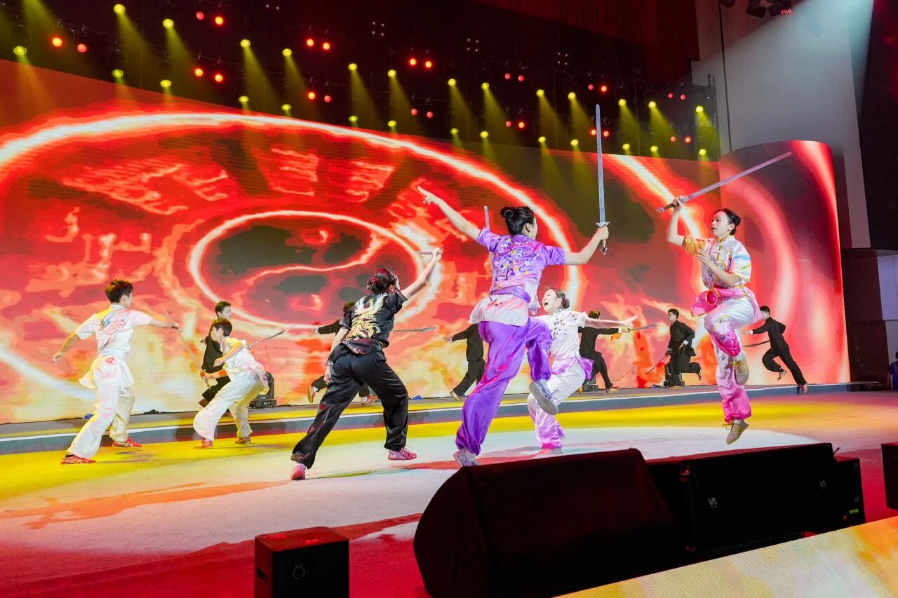 长郡中学同学带来武术表演《舞动少年》,招式刚劲尽显山河壮志,拳脚生风暗藏少年锋芒;力与美的交响震撼全场,尽显“胸藏丘壑、骨带风雷”的少年担当。