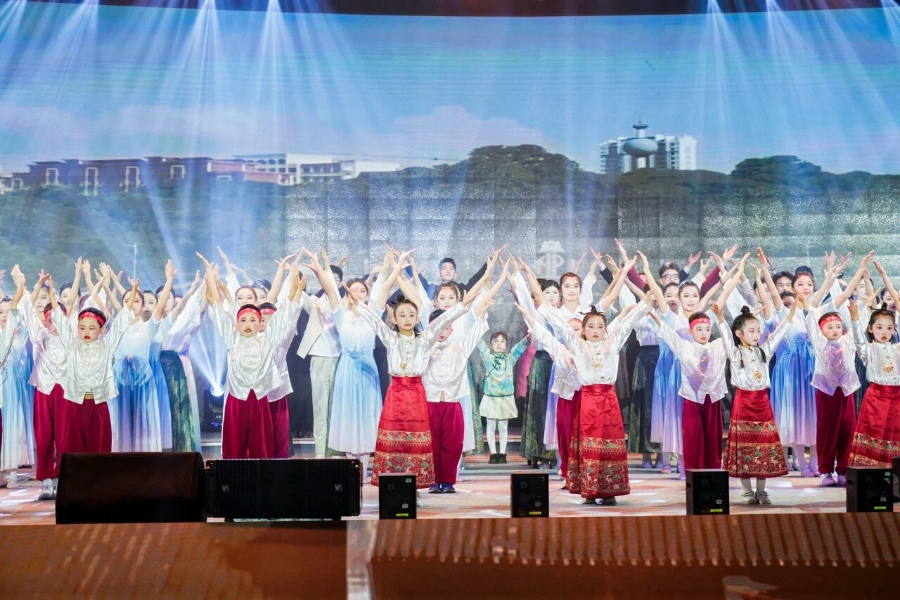 全场大合唱《歌唱祖国》,激昂歌声融汇对母校、乡土与祖国的炽热情感,旋律回荡间,家国情怀久久激荡。